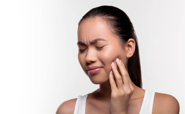 Desconforto na região da mandíbula, bochechas, têmporas ou ouvidos, podendo estar ligado à ATM ou ao desalinhamento ósseo.